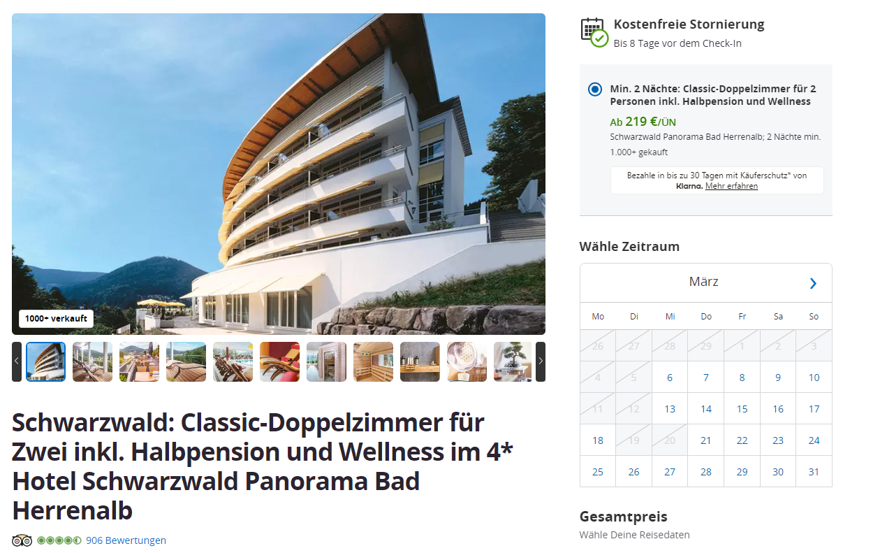 Dieses Angebot könnt ihr übrigens über Groupon buchen, mit 2 Nächten inklusive Halbpension ab 219 € pro Person. Also worauf wartet ihr noch? Taucht ein in die Schönheit des Schwarzwaldes und genießt eine unvergessliche Auszeit im Hotel Schwarzwald Panorama Bad Herrenalb!