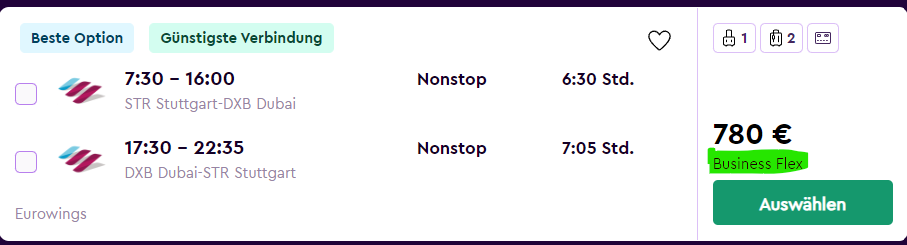 Erlebe Luxus und Komfort: Dein Business-Class Hin- und Rückflug nach Dubai mit Eurowings ab 780 €