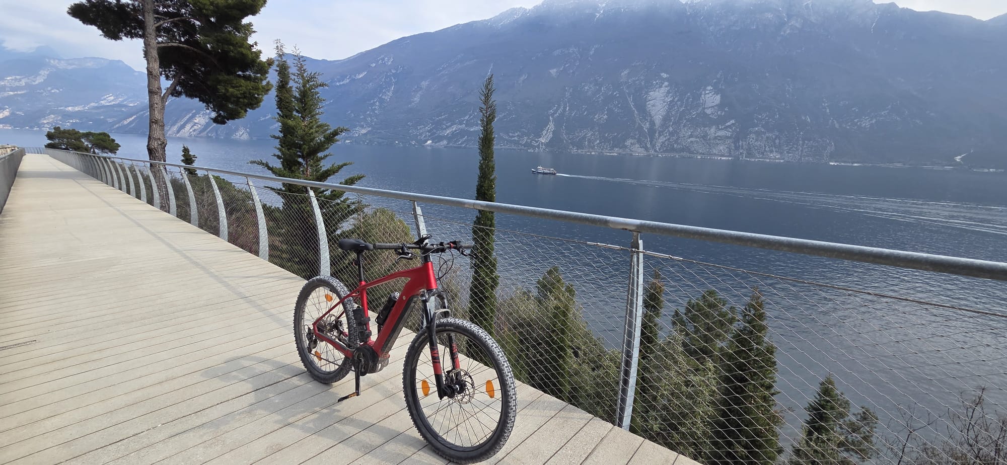 Die Ponalestraße (Riva del Garda): Diese historische, in den Fels gehauene Straße führt von Riva aus bergauf. Sie bietet atemberaubende Ausblicke auf das gesamte Nordufer und ist dank E-Bike-Unterstützung ein entspanntes Erlebnis.
