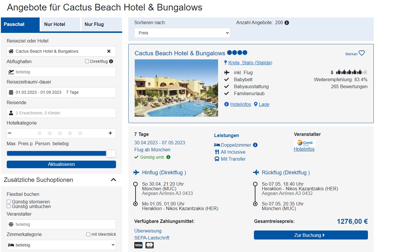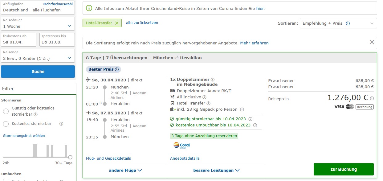 hier unten kannst Du die Reise auch über check24 abfragen