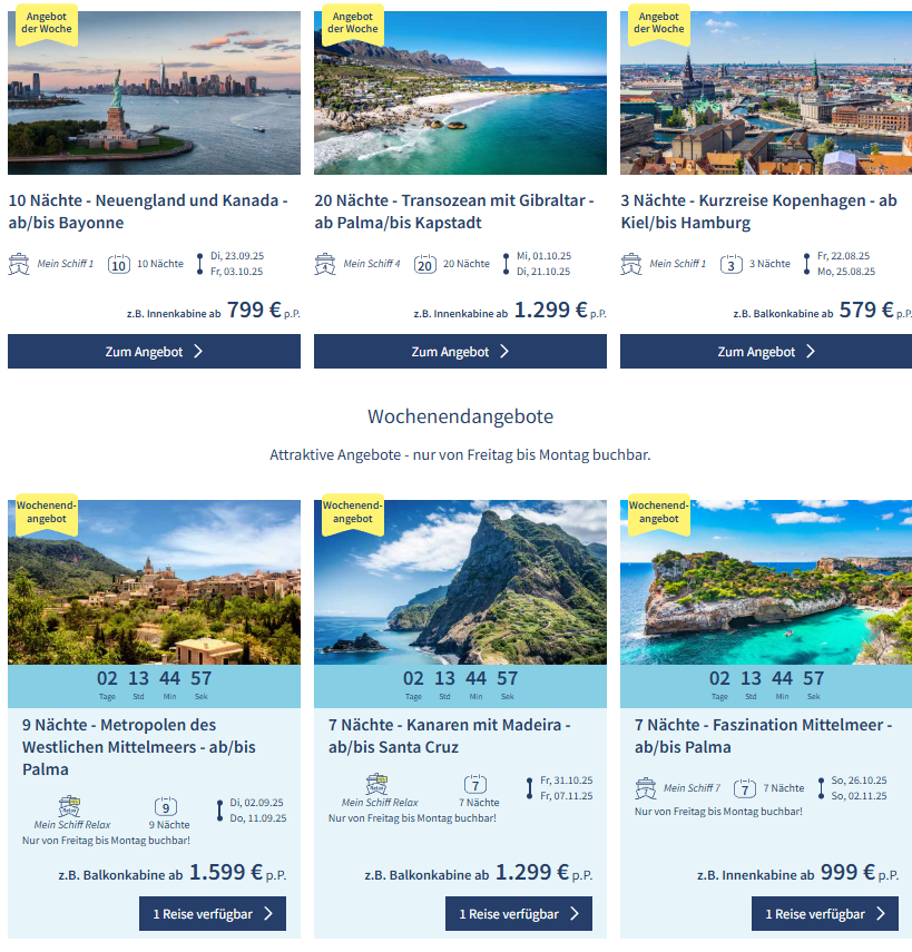 Aktuelle Mein Schiff Kreuzfahrtangebote
