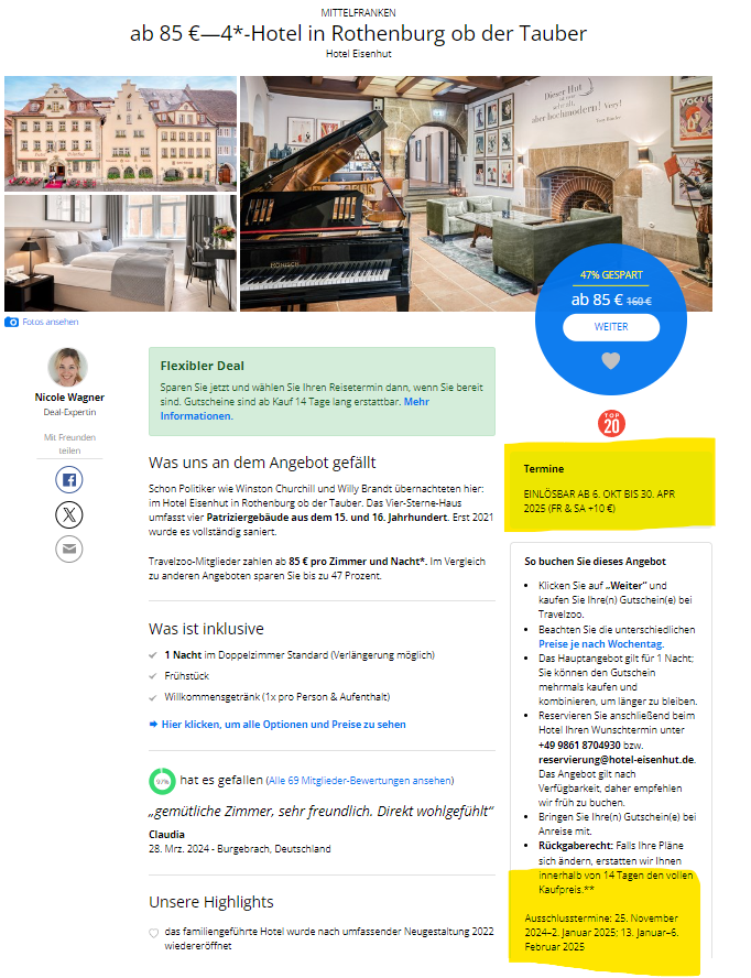 Wichtig: Um dieses Angebot nutzen zu können, musst du eine Mitgliedschaft bei Travelzoo abschließen. Diese kostet einmalig 30 € pro Jahr und du erhältst wöchentlich tolle Angebote per E-Mail.