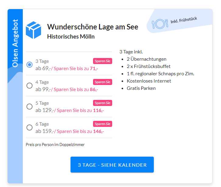 Erlebe das Seehotel Schwanenhof als deinen Rückzugsort für unvergessliche Momente. Genieße die perfekte Mischung aus Erholung, Genuss und Entdeckung in Mölln. Über olsen-reisen haben wir diesen Deal zu einem Top-Preis für zwei Nächte ab 69 € pro Person gefunden. Natürlich kannst du auch länger bleiben.