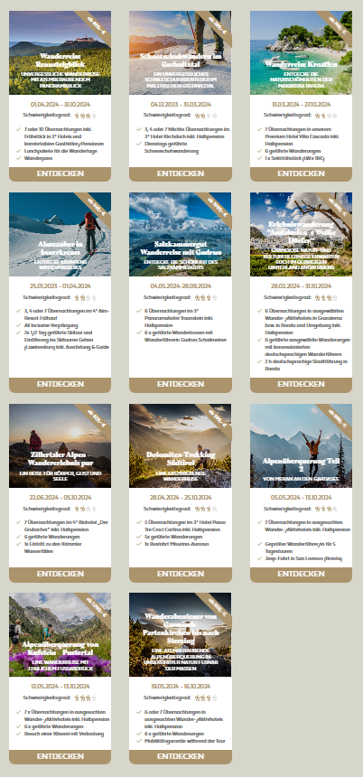 Also, was meint ihr? Seid ihr bereit für ein neues Abenteuer? Ihr seid auf der Suche nach “Geführten Wanderungen in den Alpen”? Dann schaut euch die spektakulären Angebote für geführte Wanderungen in Deutschland, Österreich, Italien, Spanien oder Kroatien an. Tolle Angebote haben wir schon ab 269 € gefunden.